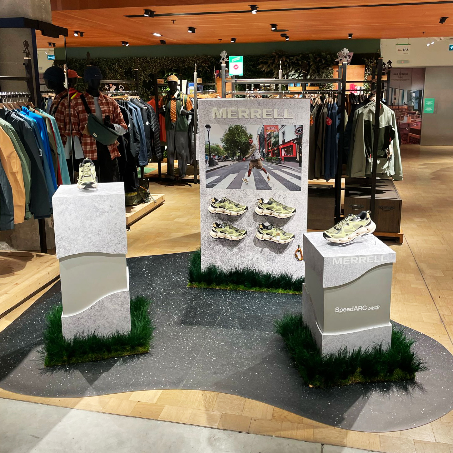 De 🌱 l'herbe 🌱 a poussé dans deux magasins parisiens grâce à la "plantation" de la campagne MERRELL chez Ekosport PARIS MADELEINE et AU VIEUX CAMPEUR chez Printemps . On apprécie la rencontre du brut et du végétal qui crée une jolie scénographie pour cette sneaker de randonnée.